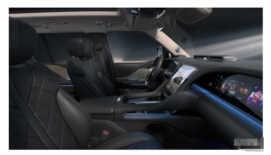 内饰采用星环座舱,搭配12.8英寸星河曲面屏及四辐平底式方向盘,风格大气兼具科技感。HUD、中控屏、副驾娱乐屏及后排两块娱乐屏可实现五屏联动,视频可直接共享到其它屏幕观看。